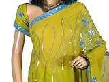 Incredible, Absolutely Spectacular, Glittering fine & luxurious Yellow-Green and Turquoise Blue Georgette Designer Bollywood "Ready to Wear" Party Sari / Saree from the "LiVi" collection with extensive Turquoise Blue intricate embroidery and elaborate silver sequin work, from India Explore the femininity and essence of a woman through an exclusive new trendy "LiVi" collection of contemporary, designer "ready to wear" sarees. Add spice and color to your lifestyle by indulging in Bollywood Indian attire. Be a trendsetter and a scene stealer with this collection of rich silks, lavish embellishments, paisley designs and festive colors - perfect for casual, formal and party wear. Expand your wardrobe with these chic, sophisticated bonanza of colors at competitive prices. These fashionable sarees from India are hot sheer elegance for evening wear or even prom wear.